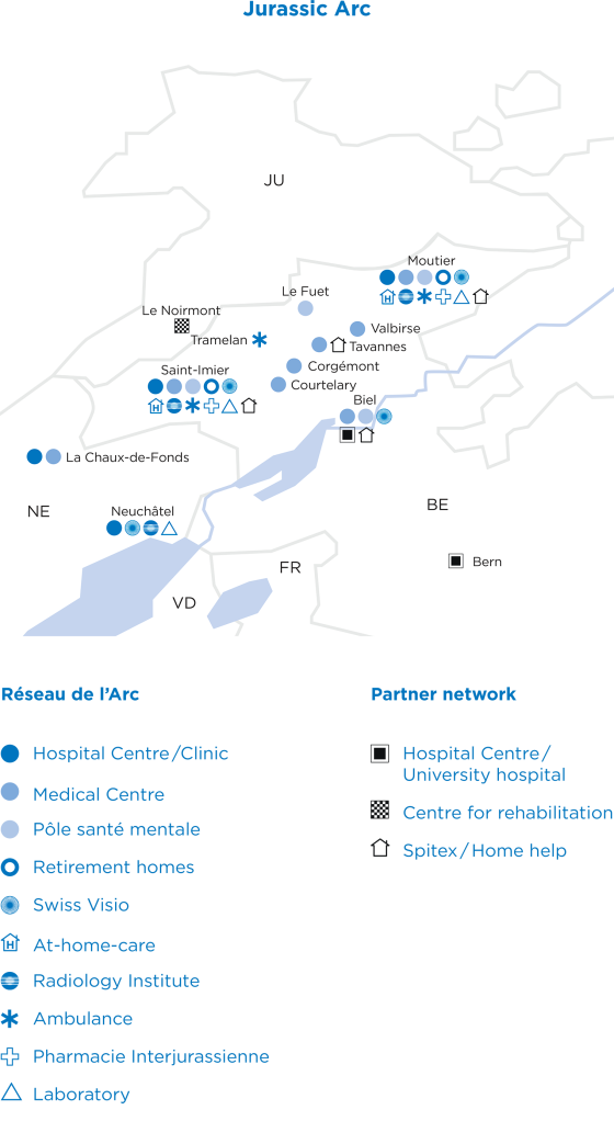The Réseau de l'Arc, Switzerland's first integrated healthcare organisation, has set new standards in healthcare with its innovative approach. The organisation includes the former Hôpital du Jura bernois with its sites in Moutier and Saint-Imier, several Medicentres and an extensive psychiatric network. By closely linking all actors in the healthcare system, it has been possible to ensure high-quality and cost-efficient healthcare.