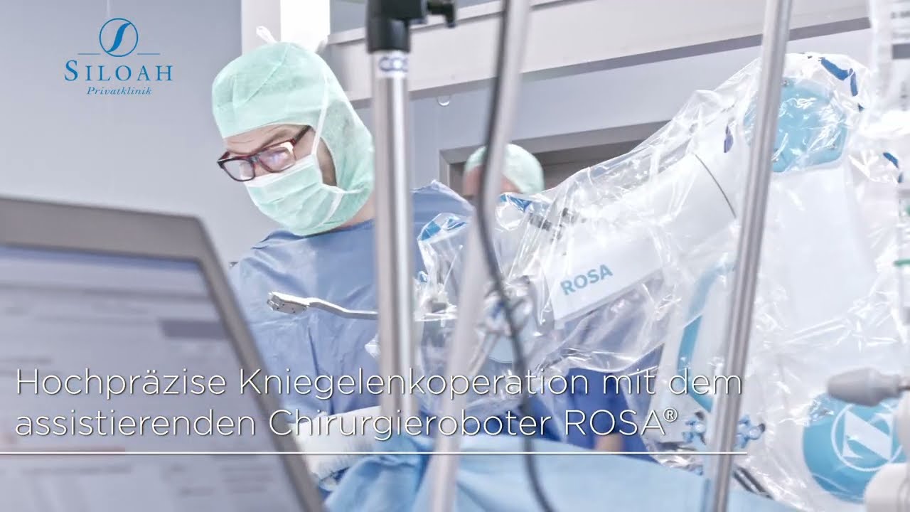 Der robotergestützte Operationsassistent unterstützt den Chirurgen während der gesamten Operation. ROSA® (Robotic Surgeery Assistant) sammelt vor und während der Operation eines orthopädischen Kniegelenkersatzes präzise Daten und zahlreiche Details im Zusammenhang mit der Anatomie des Patienten. Dank hochsensibler Sensoren weiss der Roboter ROSA® in Echtzeit wo und wie das Knie positioniert ist. Die personalisierten Daten des Patienten stehen dem Arzt während der ganzen Operation digital auf dem Display zur Verfügung. Das Implantat kann, im Vergleich zu herkömmlichen Methoden, noch präziser positioniert und das Knie wird weniger beansprucht. Den Patientinnen und Patienten wird damit eine schnellere Rückkehr in den Alltag ermöglicht.