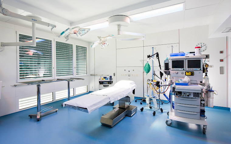 Unsere fünf Operationssäle sind auf dem neuesten Stand der Technik und verfügen über medizinische Geräte für alle Fachgebiete (Orthopädie, Allgemein- und Viszeralchirurgie, Neurochirurgie, Urologie, HNO und Gynäkologie).