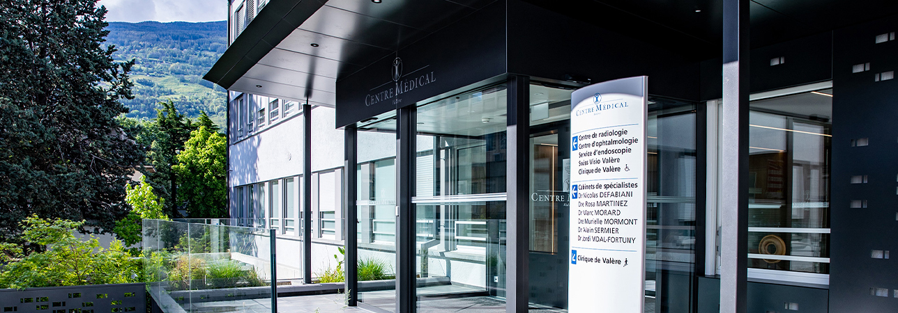It includes an endoscopy service, an ophthalmology centre, a radiology centre and specialists' offices. An emergency service (Valère Polyclinic) is also available. The entrance is located directly at the Avenue de la Gare 27, 1950 Sion.