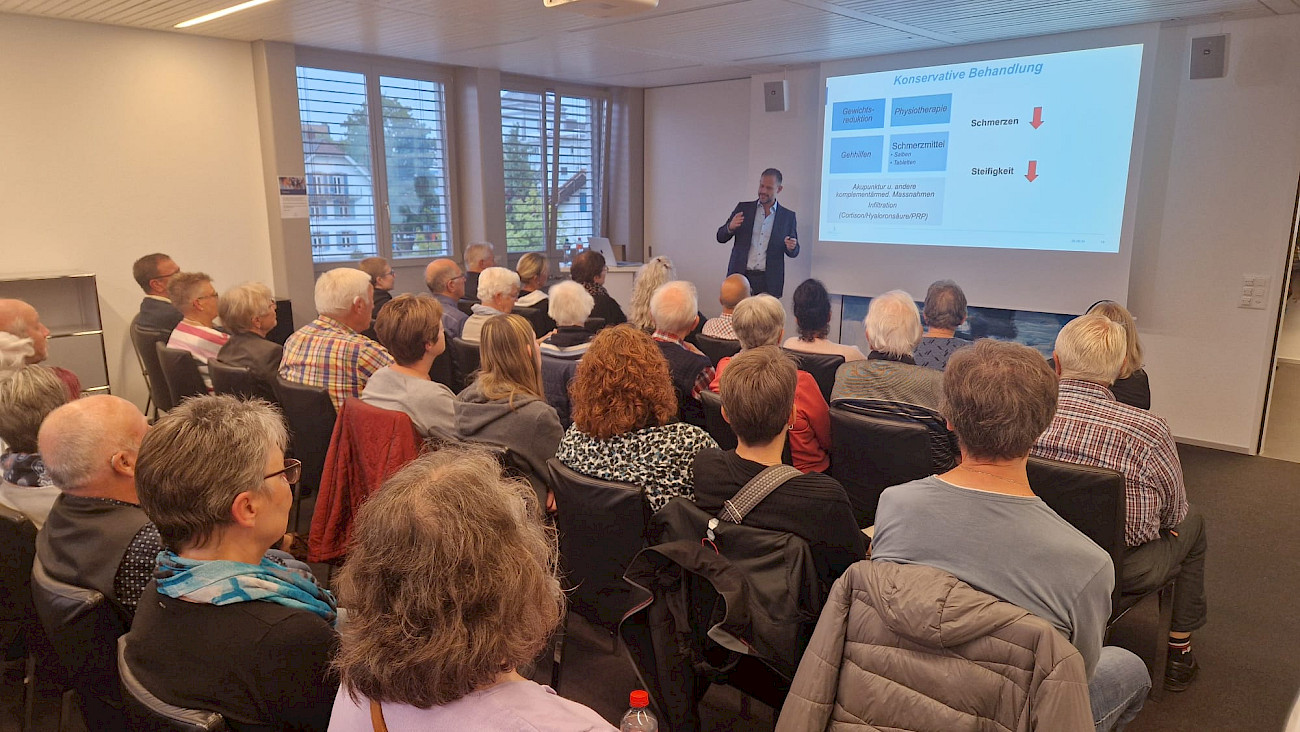 Am 26. September hielt Dr. med. Felix Paradies, Facharzt für Orthopädische Chirurgie und Traumatologie, einen Publikumsvortrag zum Thema «Arthrose in Hüft oder Knie? Rasch wieder mobil dank individueller Therapie» .