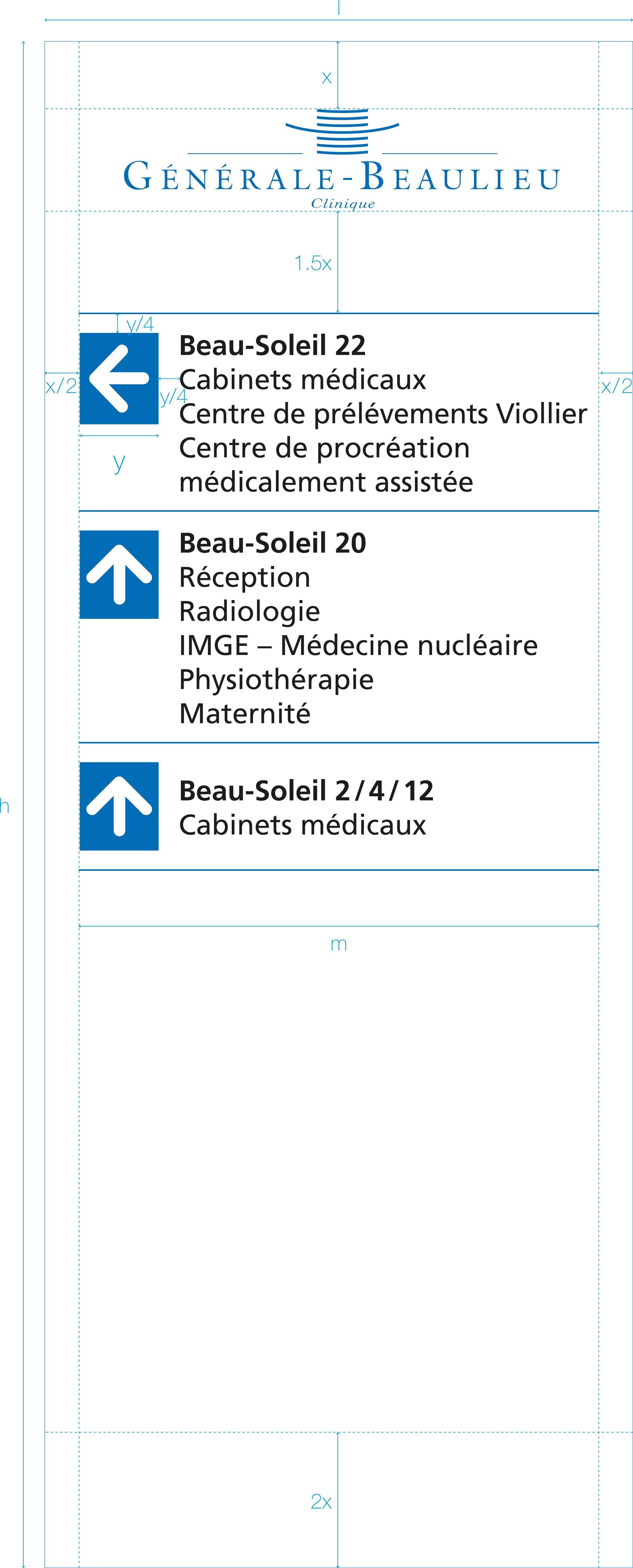 Alignement: petites capitales du logo sur la bande du bas, soit 138 cm depuis le sol