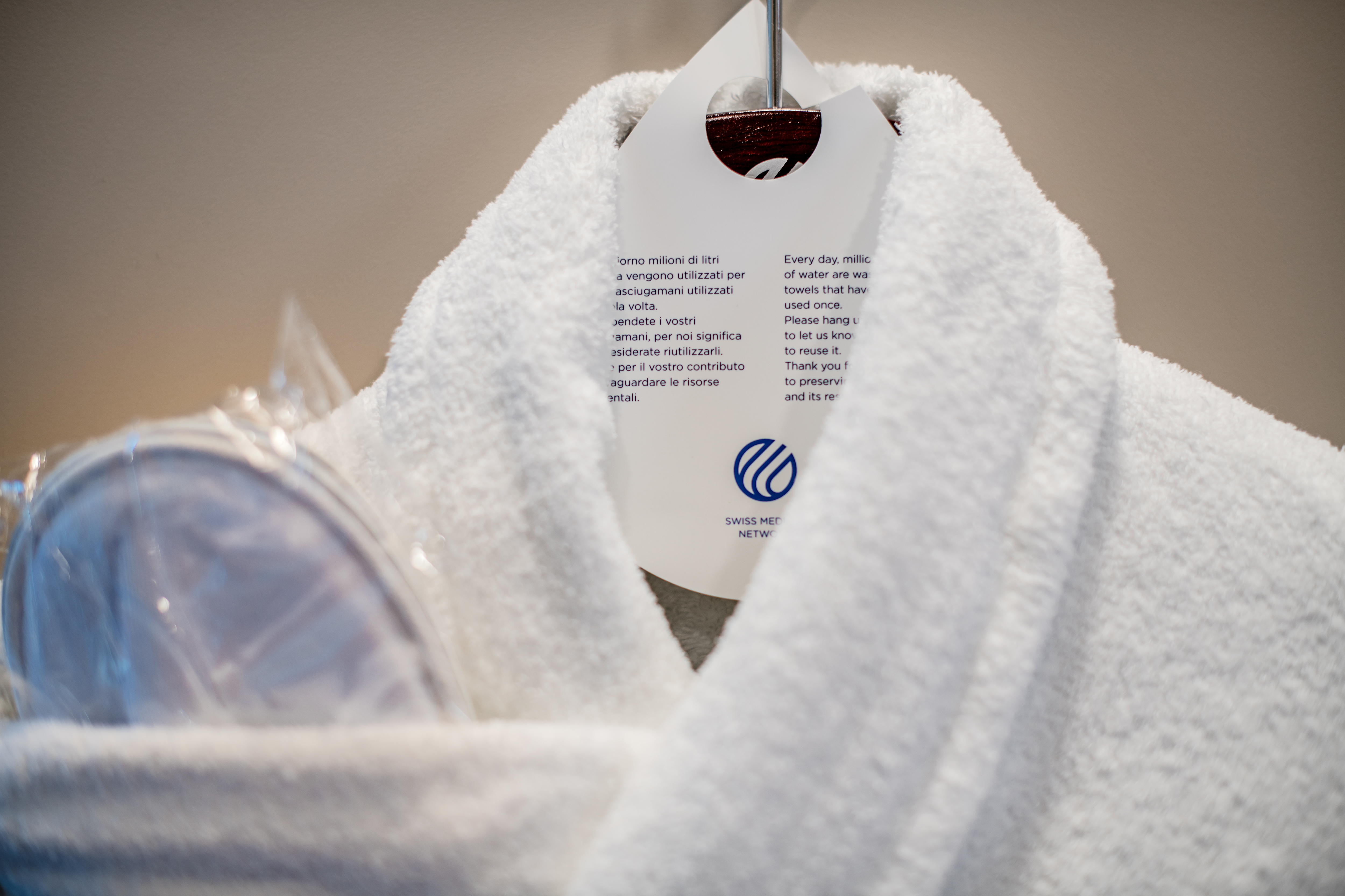 Dans une démarche d'écologie et d'économie, les cliniques sont encouragées à disposer la goutte d'eau écologie en chambre (sur le cintre du peignoir ou autour d'un crochet).