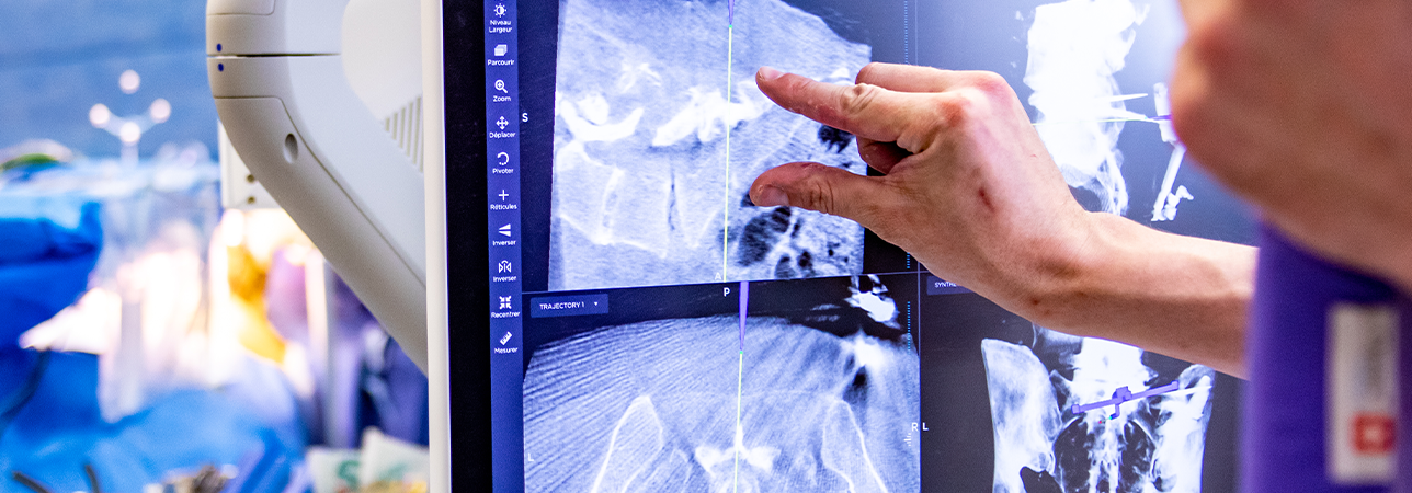 Se i dolori persistono, un’infiltrazione delle radici nervose può alleviare i sintomi. Durante la TC o l’esame radiografico, alla persona interessata viene somministrato un antinfiammatorio (cortisone) e l’anestetico locale lidocaina direttamente nella vertebra interessata.