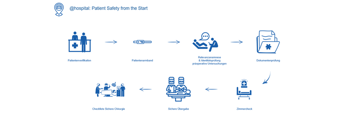 Nell'ambito dell'iniziativa nazionale, Swiss Medical Network si concentra sulla verifica coerente dei pazienti, sull'uso e sul controllo regolare dei braccialetti dei pazienti e sulla registrazione strutturata dei dati anamnestici rilevanti. Inoltre, la completezza della documentazione, i passaggi di consegne sicuri nel team interprofessionale e l'uso della lista di controllo chirurgica sono attivamente implementati e comunicati.